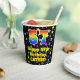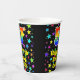 This colourful and fun birthday themed paper cup design features a large number “57” having a rainbow spectrum gradient inspired pattern. It also features the message “Happy 57th Birthday,”, and a personalised name. The background features a multicolored star field inspired pattern. Vibrant, colourful paper cups like this might be fun to have at a birthday party/celebration being held to celebrate somebody’s 57th birthday. [~Z0000540]