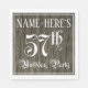 This ornate and elegant birthday themed paper napkin design features a custom name and the message “57th Birthday Party”. The large number “57th” and the words “Birthday Party” are in elaborate script-style text, and the background has an imitation/faux woodgrain-inspired pattern. Fancy, luxurious paper napkins like this might be used at a birthday celebration being held to honour somebody’s 57th birthday. [~Z0000564]