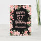 57th Birthday Pink Peach Watercolor Floral Black Birthday Card. For further customisation, please click the "Customise it" button and use our design tool to modify this template.