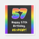 This cheerful and upbeat birthday-themed paper napkin design features the number “57“ with a multicolored rainbow spectrum inspired gradient pattern, along with the message “Happy 57th Birthday,”, and an editable recipient name. Birthday themed paper napkins like this might be fun to use at a birthday party being held for somebody who is celebrating their fifty seventh birthday. [~Z0000629]