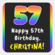 This upbeat and vibrant birthday themed square sticker design features a large number “57“ with a colourful rainbow spectrum inspired gradient pattern, along with the message “Happy 57th Birthday,”, and an editable recipient name. Stickers like these might be used when celebrating somebody’s 57th birthday. [~Z0000630]
