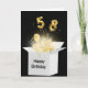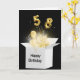 Gold balloons and sparkling light beams glow in a white box on black background for 58th birthday