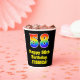 This exciting and colourful birthday paper cup design features a large number “58” having a rainbow spectrum gradient inspired pattern. It also features the message “Happy 58th Birthday,”, and an editable name. It also has a black-coloured background. Vibrant, colourful paper cups like this might be fun to use at a birthday party being held in celebration of somebody’s fifty eighth birthday. [~Z0000537]