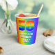 This fun and exciting birthday paper cup design features a large number “58” having a colourful rainbow spectrum inspired gradient pattern. It also features the message “HAPPY 58th BIRTHDAY,”, and a custom name. The background also features a vibrant multicolored rainbow spectrum inspired gradient pattern. Joyful paper cups like this might be fun to use at a birthday party in honour of somebody’s 58th birthday. [~Z0000576]
