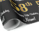 This sophisticated, stylish, and luxurious birthday wrapping paper design features a large ordinal number “58th” having a faux/imitation gold-like look, along with the birthday greeting message “Happy 58th Birthday,” and an editable recipient name in a script-style font. The background is coloured black. Birthday themed wrapping paper like this might be used when giving a gift or present in celebration of somebody’s 58th birthday. [~Z0000515]