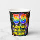 This exciting and joyful birthday-themed paper cup design features a large number “58” having a rainbow spectrum gradient inspired pattern. It also features the message “Happy 58th Birthday,”, and a personalised name. The background features a colourful pattern inspired by the appearance of bursting celebratory fireworks. Vibrant, colourful paper cups like this might be fun to use at a birthday party being held in celebration of somebody’s 58th birthday. [~Z0000539]