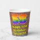 This fun and vibrant urban street art and graffiti themed birthday paper cup design features a large number “58” having a colourful rainbow spectrum gradient inspired pattern. It also features the message “Happy 58th Birthday,”, and a custom name. The background features a brick wall pattern. Vibrant, colourful paper cups like this might be fun to use at a birthday celebration/party being held to celebrate somebody’s 58th birthday. [~Z0000543]