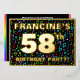 The front of this joyful and vibrant fifty-eighth birthday party/celebration foil invitation card design features a personalised name, a large number “58th”, the message “BIRTHDAY PARTY!”, and a border. The background of the front features a fun, colourful musical symbols and notes pattern. The back features personalised details about the event, such as the date, time, location, and any other relevant information. Personalised invitations like these might be a fun way to invite guests to a birthday gathering being held in celebration of somebody’s 58th birthday. These might be extra special for a music-themed birthday party. [~Z0000601]