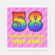 This happy and cheerful 58th birthday-themed paper napkin design features a large number "58" having a colourful pattern inspired by the appearance of a rainbow spectrum. It also features the message "Happy 58th Birthday,", followed by a custom name. The background features a fun pattern of light pink and dark pink stripes containing loving pink heart shapes. Birthday themed paper napkins like this might be fun to use at a party being held to celebrate somebody’s fifty eighth birthday. [~Z0000417]