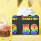 This fun, cheerful, and colourful birthday wrapping paper design features a large number "59" and the message "HAPPY BIRTHDAY,", both having a rainbow spectrum gradient inspired pattern colouring, along with a bold yellow custom recipient name. The background is coloured black. Fun wrapping paper like this could be used when wrapping a birthday present or gift being given to somebody who is celebrating their fifty ninth birthday. [~Z0000475]