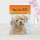 Cute brown poodle with daisies on wicker chair for 59th birthday,