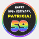59th Birthday: Colourful Rainbow # 59, Custom Name Classic Round Sticker