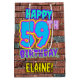 The front of this fun birthday-themed gift bag design features the message “HAPPY 59TH BIRTHDAY,” having a vibrant, colourful, graffiti-inspired look, plus a personalised recipient name. The background features a pattern inspired by the look of a brick wall. A colourful birthday themed gift bag like this might be a fun way to wrap a gift or present being given to celebrate somebody’s 59th birthday. [~Z0000536]
