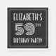 This elegant and 1920s-1930s style inspired fifty-ninth birthday celebration/party paper napkin design features an editable name, a fancy art deco look inspired number “59th”, the message “BIRTHDAY PARTY!”, and a border pattern consisting of lines. The background is coloured black by default, but it can be customised to a different colour, if desired. Paper napkins like these might be used at a party for somebody who is celebrating their 59th birthday. [~Z0000616]