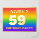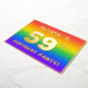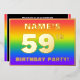 The front of this eye-catching fifty-ninth birthday party/celebration foil invitation card design features a custom name, a large number “59th”, the message “BIRTHDAY PARTY!”, and a border. The background of the front features an exciting, multicolored, rainbow spectrum inspired gradient pattern. The back features personalised details about the event, such as the date, time, location/venue, and any other relevant information. Personalised invitations like these might be a fun way to invite guests to a birthday gathering being held to honour somebody’s 59th birthday. [~Z0000599]