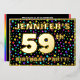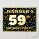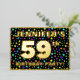 The front of this joyful and eye-catching fifty-ninth birthday celebration/party foil invitation card design features a personalised name, a large number “59th”, the message “BIRTHDAY PARTY!”, and a border. The background of the front has a fun, colourful starfield pattern. The back features personalised details about the event, such as the date, time, place/venue, and any other important information. Customisable invitations like these might be a fun way to invite attendees/guests to a birthday party/gathering being held to honour somebody’s 59th birthday. [~Z0000600]