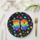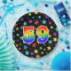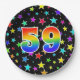 This fun, colourful, and cheerful paper plate design features a large number "59" coloured with a rainbow spectrum gradient inspired pattern. The background features a pattern of colourful star shapes. Fun paper plates like this might be used at a party being held to celebrate somebody’s fifty ninth birthday, or a couple’s 59th anniversary, or some other fifty ninth event. [~Z0000493]