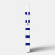 Inspired by a map symbol for railroad tracks, five blue stripes are split in half by a blue line down the centre. The blue on white geometric pattern has a clean, sleek look.