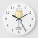 Break out the bubbly with this chic and stylish champagne clock! This classy cocktail clock informs you that it's five o'clock somewhere. The 5 is gone and in its place is the word "somewhere". In the middle of the clock is a watercolor champagne drink, bubbles and all. White background.