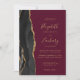 5-Photo Black Gold Agate Burgundy Wedding Invitation