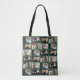 Create your own cool photo collage tote bag featuring a grid of four photos across and 6 photos down with green borders separating them. Easily replace the sample photos with 5 of your own images and they will automatically repeat across the design on both sides. Makes a wonderful personalised gift. If you want a photo to show up more often, add it more than once in the sidebar.