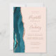 5-Photo Teal Blue Rose Gold Agate Blush Wedding Invitation