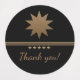 Professional looking, black with gold text, round waterproof label. Design features 5 brushed gold stars on the front and the ability to make it your own. Add your logo or photo and thank you or custom message. Perfect for entrepreneurs and businesses to use on packaging and shipping. Great for personal use with your photo added.