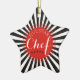 Cool black rays or stripes with radiant red centre with five star chef on front and back of this culinary Christmas tree ornament for your favourite cook, chef, or chef wannabe.