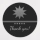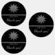 Professional looking, black with silver text, round, waterproof label. Design features 5 silver stars on the front and the ability to make it your own. Add your logo or photo and thank you or custom message. Perfect for entrepreneurs and businesses to use on packaging and shipping. Also nice for personal use with your photo.