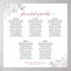 This 5 table wedding seating chart will help your guests find the right table at your reception. The design is both simple and elegant with dark grey and dusty rose or mauve pink text on a white background and lacy silver faux foil floral filigree in the corners. The title reads "please find your table" in an elegant script calligraphy. Sophisticated and chic. Includes table assignments for 50 guests with 10 seats per table.