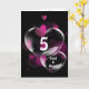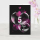 Pink hearts and white translucent heart-shaped bubbles for 5th anniversary on black background.