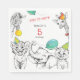 5th Anniversary Party Paper Napkin with fun cute animal illustrations drawn in pencil sketch style.