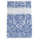 This over-the-hill numeric design is a blue and white random number pattern with a blue milestone number 65 repeated in varied sizes and angles over a white background. There is a printed banner and a gift tag with text templates so you can easily personalize any or all of the text.