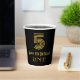 This vintage style and 1920s/1930s style inspired birthday paper cup design features a large art deco inspired look number “5”, in addition to the birthday greeting message “Happy 5th Birthday,” and a personalised name. It also has a black-coloured background. Vintage style birthday themed paper cups like this might be used at a birthday party for somebody who is celebrating their 5th birthday. [~Z0000546]