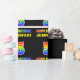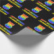 This cheerful, fun, and colourful birthday wrapping paper design features a large number "5" and the message "HAPPY BIRTHDAY,", both having a rainbow spectrum gradient inspired pattern colouring, along with a bold yellow customisable recipient name. The background is coloured black. Fun birthday themed wrapping paper like this could be used to wrap a gift or present being given to celebrate somebody’s 5th birthday. [~Z0000475]