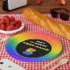 This bold and cheerful birthday paper plate design features the number “5“ having a multicolored rainbow spectrum inspired gradient pattern, along with the message “HAPPY 5th BIRTHDAY,”, and a customizable recipient name. Birthday themed paper plates like this might be fun to use at a birthday party being held for somebody who is celebrating their 5th birthday. [~Z0000635]