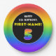 5th Birthday: Colorful Rainbow # 5, Custom Name Paper Plate