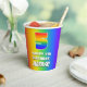 This fun and cheerful birthday themed paper cup design features a large number “5” with a colourful rainbow spectrum inspired gradient pattern, along with the message “HAPPY 5th BIRTHDAY,”, and an editable name. The background also features a vibrant multicolored rainbow spectrum inspired gradient pattern. Birthday themed paper cups like this might be fun to use at a birthday party being held for somebody who is celebrating their fifth birthday. [~Z0000576]