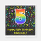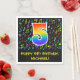 This fun, vibrant, and colourful birthday paper napkin design features a large number "5" having a rainbow spectrum gradient inspired pattern. It also features the message "Happy 5th Birthday,", and a personalised name. Part of the background has a colourful music notes and symbols pattern. Birthday themed paper napkins like this might be fun to use at a party being held to celebrate somebody’s 5th birthday. [~Z0000421]