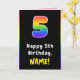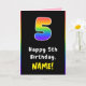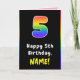 5th Birthday: Colourful Rainbow # 5, Custom Name Card