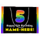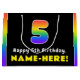 5th Birthday: Colourful Rainbow # 5, Custom Name Large Gift Bag