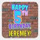 This fun birthday square sticker design features the message “HAPPY 5TH BIRTHDAY,” having a colourful, vibrant, graffiti and urban street art inspired appearance, in addition to a customisable recipient name. The background features a brick wall inspired pattern. Fun, vibrant, personalised stickers like this might be given as a birthday present, or used while wrapping presents/gifts, or perhaps used as birthday party decorations when celebrating somebody’s 5th birthday. [~Z0000535]