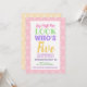 Beautiful blue green yellow red, pastel tones, pleasent and complimentary colours. Great design for birthday invitation and clever 5th birthday wording.