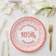 5th Birthday Modern Number Pattern Coral/White Paper Plate