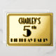 The front of this elegant fifth birthday party foil invitation features a personalised name, a large art deco look inspired number “5th”, the message “BIRTHDAY PARTY”, and a border pattern consisting of lines. The back features personalised details about the event, such as the date, time, venue, and any other important information. Luxurious, stylish, editable invitations like these might be used to invite guests to a birthday party/gathering being held in celebration of somebody’s 5th birthday. [~Z0000592]