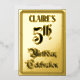 The front of this opulent and ornate fifth birthday party/celebration foil invitation design features the message “5th Birthday Celebration” in elaborate script-style text. It also features a custom name. The back features personalised details about the event, such as the date, time, location/venue, and any other information that may be relevant. Luxurious, elegant, customisable invitations like these might be used to invite guests to a birthday party/celebration being held in celebration of somebody’s 5th birthday. [~Z0000596]