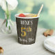 This luxurious and opulent birthday paper cup design features a customisable name and the message “5th Birthday Party”. The large number “5th” features a faux/imitation gold-inspired colouring pattern, the words “Birthday Party” are in elegant script-style text, and the background features an imitation/faux woodgrain-inspired pattern. Ornate, fancy paper cups like this might be useful to have at a birthday party/celebration being held to celebrate somebody’s fifth birthday. [~Z0000568]