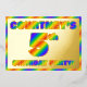 The front of this eye-catching fifth birthday party foil invitation card features a customisable name, a large number “5th”, the message “BIRTHDAY PARTY!”, and a border, all featuring a fun, colourful, rainbow spectrum inspired gradient pattern. The back features personalised details about the event, such as the date, time, venue, and any other important information. Upbeat, exciting, personalised invitations like these might be used to invite guests to a birthday gathering being held to honour somebody’s 5th birthday. [~Z0000593]