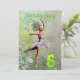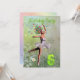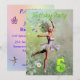 A beautiful ballerina flower fairy dancing on a birthday party invitation. The ballerina is wearing a white tutu, and has trails of flowers coming from her hair. She is dancing through a meadow full of daisies.