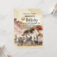 Invite your friends and loved ones and celebrate your child's 5th birthday with this safari birthday party invitation that features an African savanna landscape in the background and a group of baby animals, which includes a tiger cub, elephant, rhinoceros, ostrich chick, zebra and stork in the foreground.